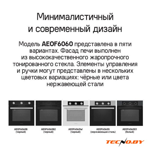 Духовой шкаф предлагает 6 режимов работы, включая такие, как нижний нагрев, двухсторонний нагрев, гриль с конвекцией, двухсторонний нагрев с конвекцией и размораживание. Дополнительно предусмотрен режим Эко, который позволяет оптимизировать энергопотребление, сохраняя при этом высокую производительность.
