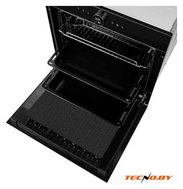Комплектация духового шкафа включает стандартный и глубокий противень, а также решетку, изготовленные из эмалированного материала. Габариты устройства — 59.5x57.5x59.5 см при весе 34.9 кг — делают его идеальным для встроенного монтажа в нише размером 58.5 — 60 см в высоту, 56.2 см в ширину и 57 см в глубину.