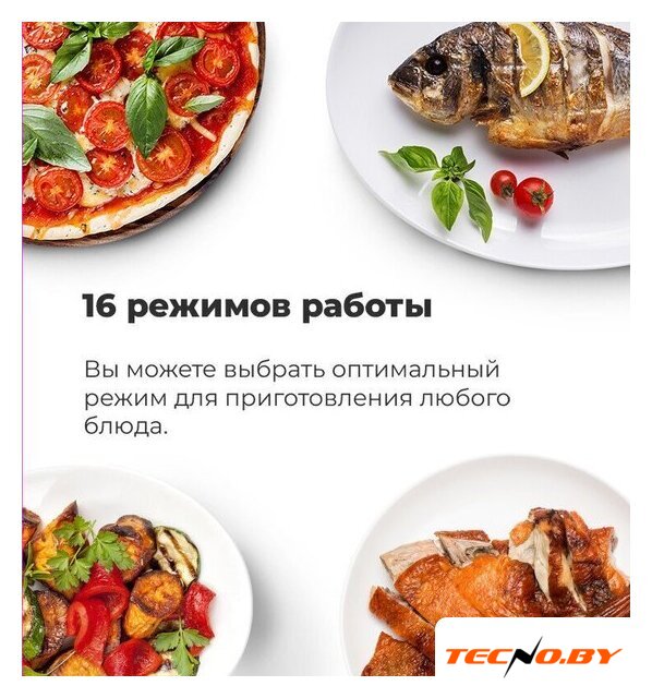 | Режимы работы | нижний нагрев, двухсторонний нагрев, гриль + конвекция, размораживание, подготовка теста |