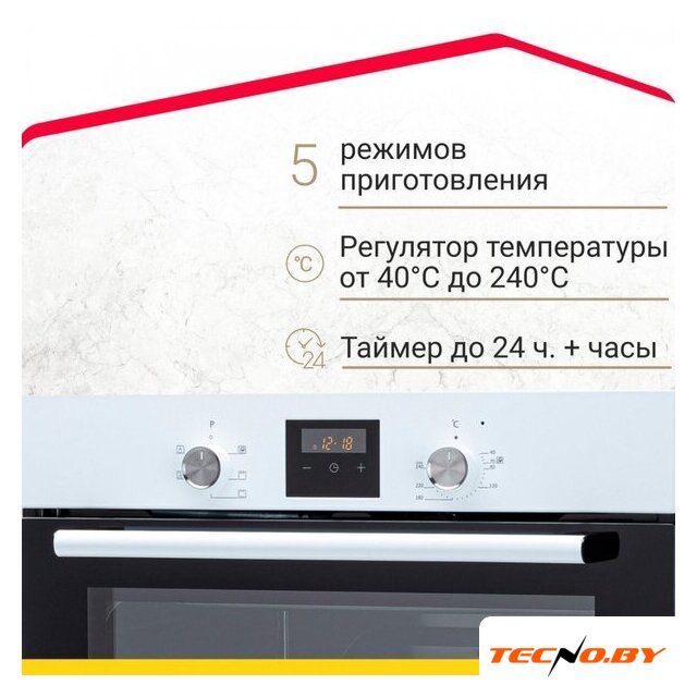 Электронная система управления, оснащенная таймером и термостатом, дает полную свободу в выборе временных параметров приготовления. Встроенное освещение позволяет следить за процессом, не открывая дверцу и не отвлекаясь от других дел. Максимальная температура в 240 °C позволяет готовить практически любые блюда, а двухслойное стекло дверцы гарантирует надежную термоизоляцию.