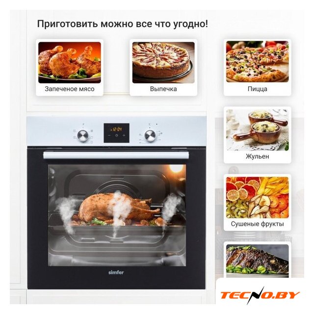 Электрический духовой шкаф Simfer B6EW56014 – это надежное сочетание классического дизайна и современных технологий, произведенное в Турции. Этот полноразмерный шкаф оформлен в элегантном белом цвете и станет изысканным дополнением любой кухни. Легкая в использовании система управления и привлекательный светодиодный экран делают эксплуатацию устройства простой и интуитивно понятной.