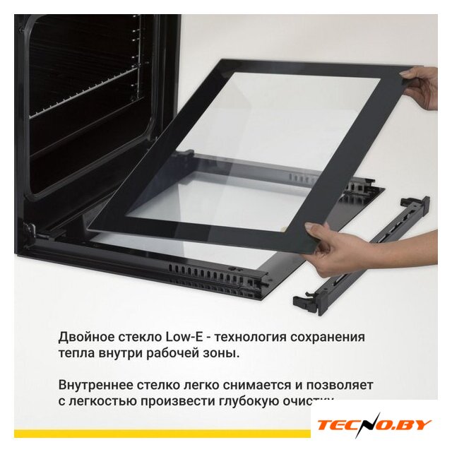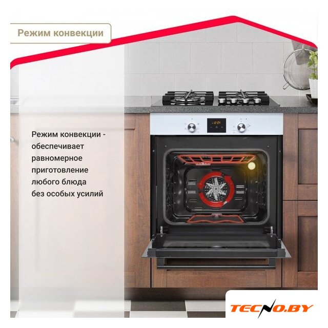 электрический с конвекцией, объем 62 л, 8 режимов, очистка ручная, 2 стекла в дверце, направляющие рельефные