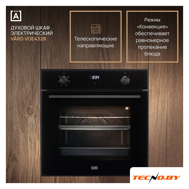 Духовой шкаф VARD VOE432B имеет мощность подключения 2170 Вт и предназначен для тех, кто ценит эффективность и надежность. С объемом 73 литра вы можете с легкостью готовить блюда для всей семьи. Духовой шкаф оборудован проволочными и телескопическими направляющими, включая один уровень телескопических направляющих, для удобного размещения и изъятия блюд.