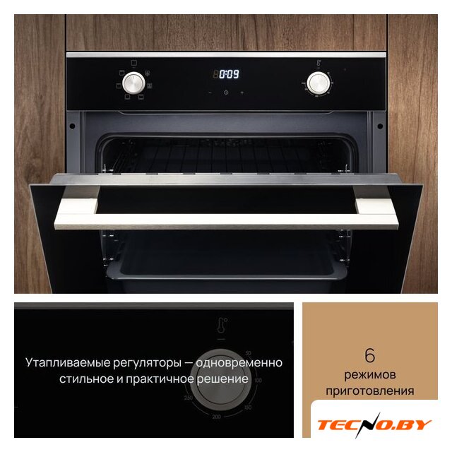электрический с конвекцией, объем 81 л, утапливаемые переключатели, 9 режимов, очистка ручная + каталитическая, 2 стекла в дверце, направляющие проволочные + телескопические (1 уровень)