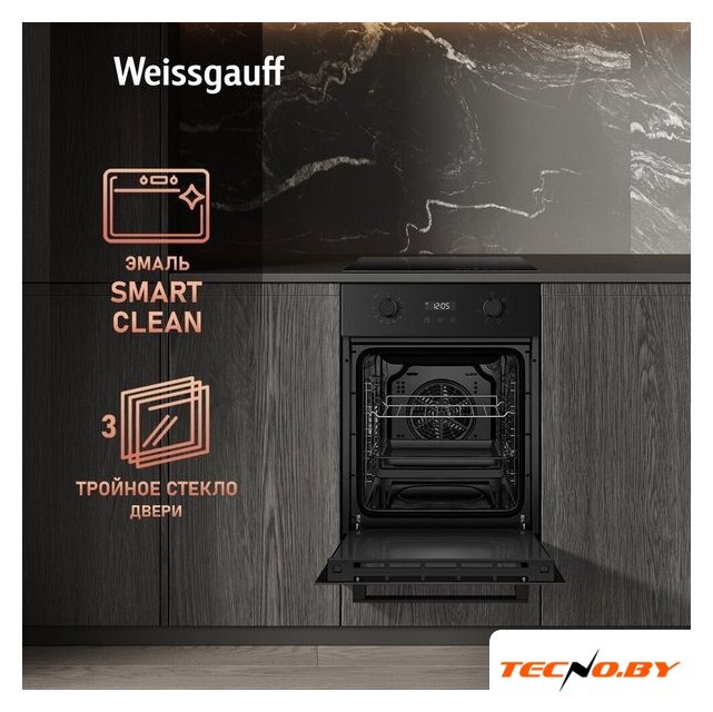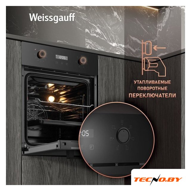 электрический с конвекцией, объем 70 л, утапливаемые переключатели, 9 режимов, очистка каталитическая, 3 стекла в дверце, направляющие проволочные + телескопические (2 уровня)