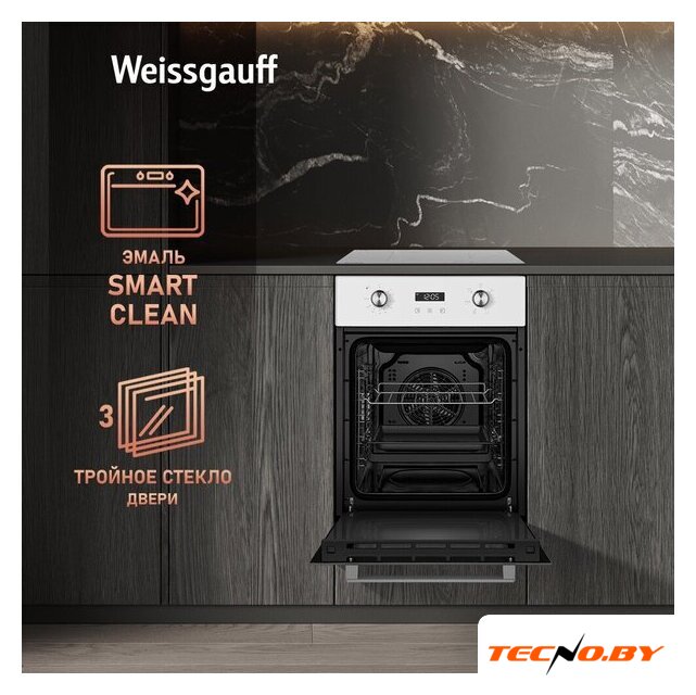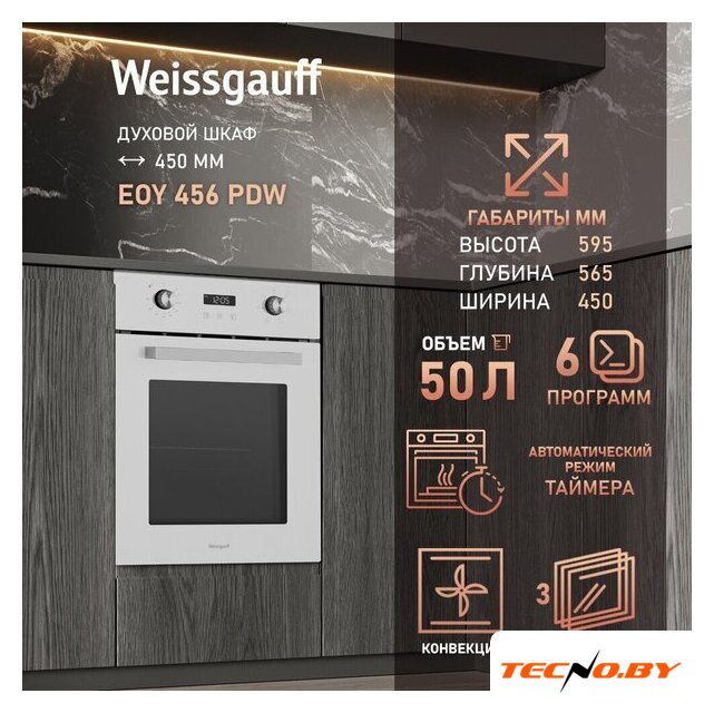 электрический с конвекцией, объем 55 л, 6 режимов, очистка ручная, проволочные направляющие, энергопотребление A