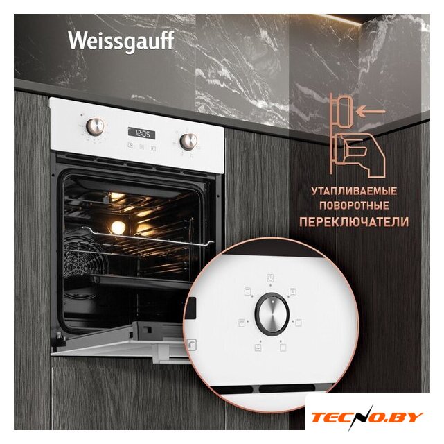 электрический с конвекцией, объем 60 л, утапливаемые переключатели, 6 режимов, очистка паровая, направляющие проволочные