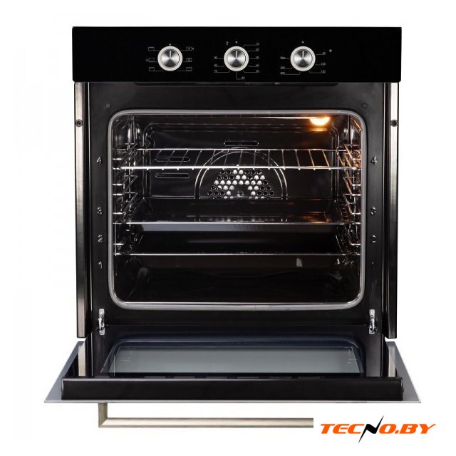 электрический с конвекцией, объем 51 л, утапливаемые переключатели, 5 режимов, очистка ручная, 3 стекла в дверце, направляющие проволочные + телескопические (1 уровень)