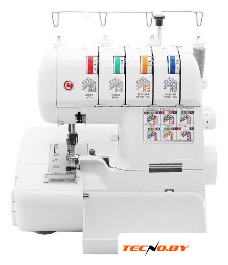 оверлок; рабочих нитей: 2, 3, 4; максимальная ширина строчки: 8 мм; максимальная длина строчки: 4 мм; регулировка давления лапки; скорость шитья: 1300 об/мин