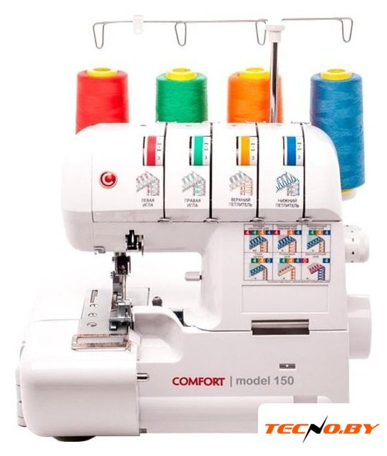 оверлок; рабочих нитей: 2, 3, 4; максимальная ширина строчки: 7 мм; максимальная длина строчки: 4 мм; регулировка давления лапки; скорость шитья: 1300 об/мин