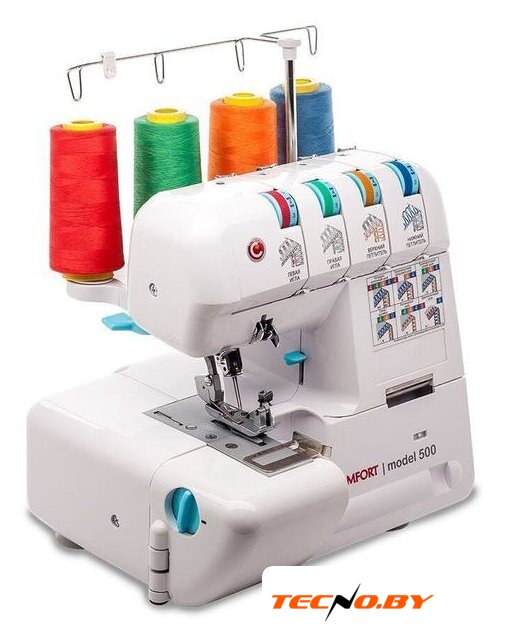 оверлок; рабочих нитей: 2, 3, 4; максимальная ширина строчки: 7 мм; максимальная длина строчки: 4 мм; регулировка давления лапки; скорость шитья: 1300 об/мин