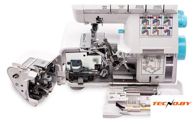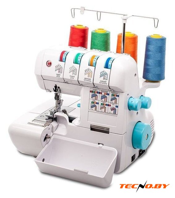 оверлок; рабочих нитей: 2, 3, 4; максимальная ширина строчки: 8 мм; максимальная длина строчки: 4 мм; регулировка давления лапки; скорость шитья: 1300 об/мин