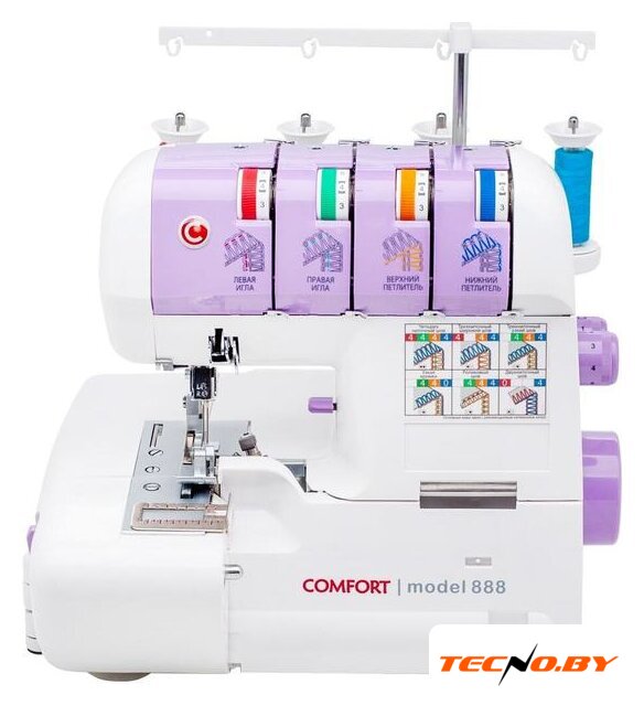 оверлок; рабочих нитей: 2, 3, 4; максимальная ширина строчки: 8 мм; максимальная длина строчки: 4 мм; регулировка давления лапки; скорость шитья: 1300 об/мин