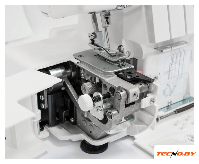 оверлок, рабочих нитей: 2, 3, 4, максимальная ширина строчки: 7 мм, максимальная длина строчки: 4 мм, регулировка давления лапки, скорость шитья: 1300 об/мин