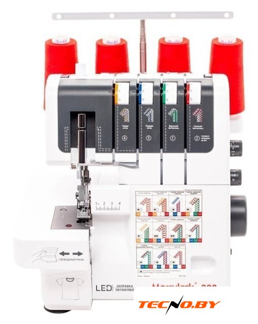 оверлок; рабочих нитей: 3, 4; максимальная ширина строчки: 7 мм; максимальная длина строчки: 5 мм; регулировка давления лапки