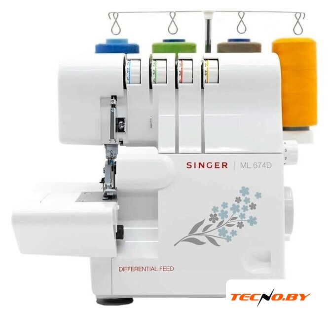 оверлок; рабочих нитей: 4; нитей для плоского шва: 3; максимальная ширина строчки: 7 мм; максимальная длина строчки: 4 мм; регулировка давления лапки; скорость шитья: 1300 об/мин
