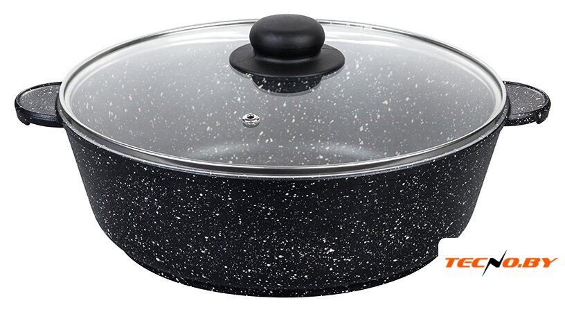 жаровня, алюминий, покрытие фторопласт, 28 см, стеклянная крышка, алюминиевая ручка
