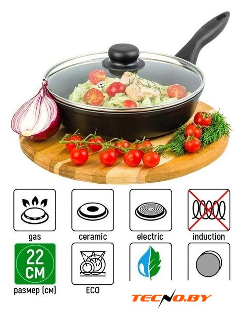 стандартная, алюминий, 22 см, стеклянная крышка, бакелитовая ручка