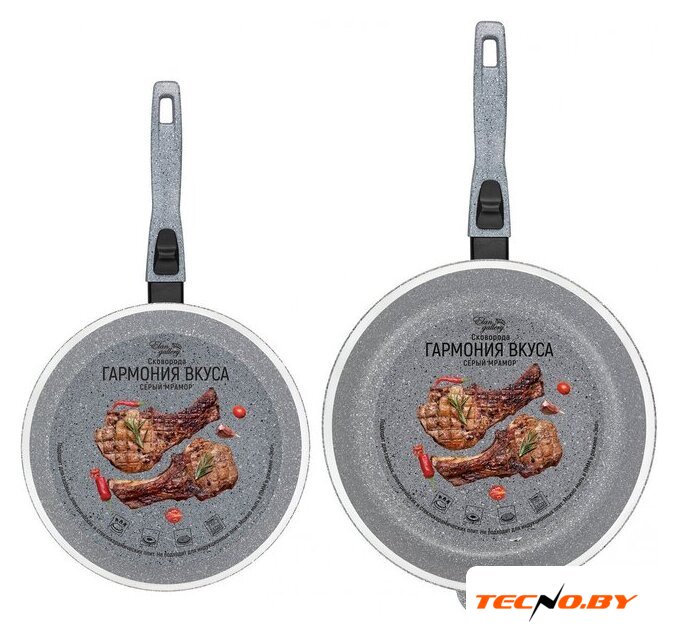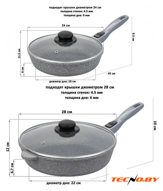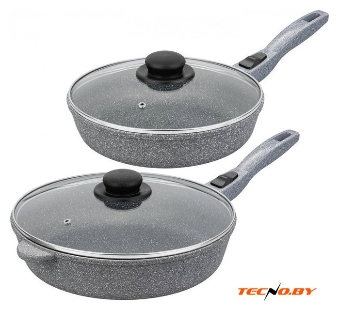 | Состав набора | 2 сковороды 28 см и 24 см, 2 крышки 28 см и 24 см |