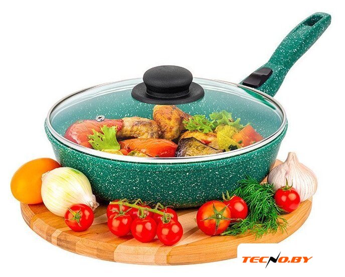 стандартная, алюминий, покрытие минеральное, 28 см, стеклянная крышка, бакелитовая ручка