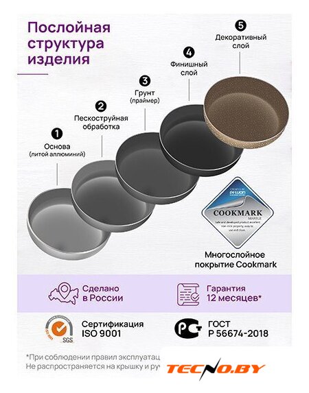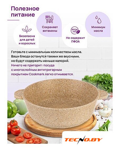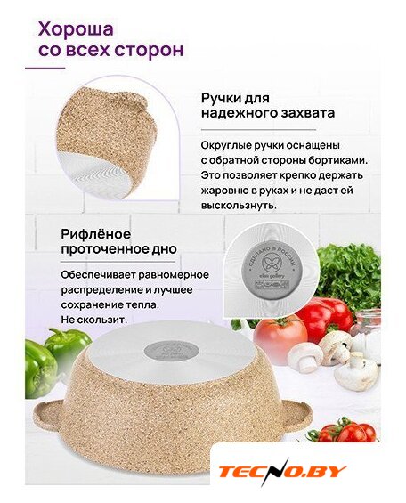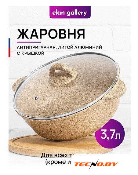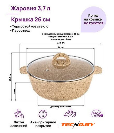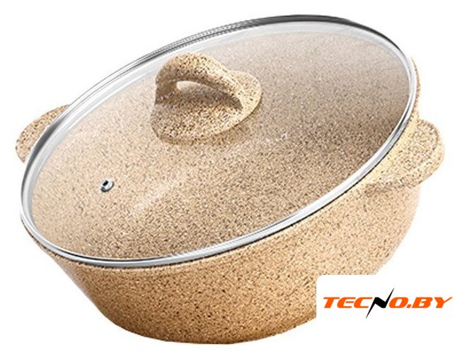 жаровня, алюминий, покрытие минеральное, 28 см, стеклянная крышка, алюминиевая ручка