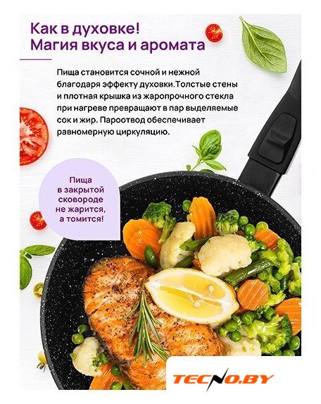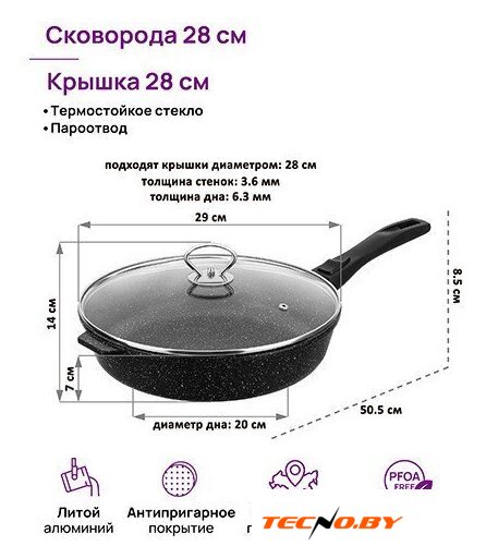 стандартная, алюминий, покрытие минеральное, 26 см, стеклянная крышка, бакелитовая ручка