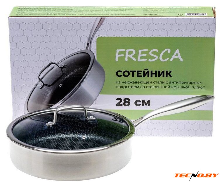 сотейник, нержавеющая сталь, 22 см, стеклянная крышка, стальная ручка