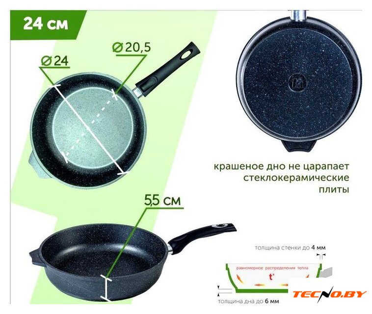 стандартная, алюминий, покрытие фторопласт, 24 см, бакелитовая ручка
