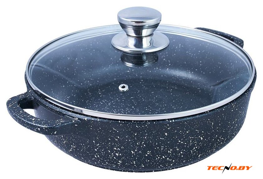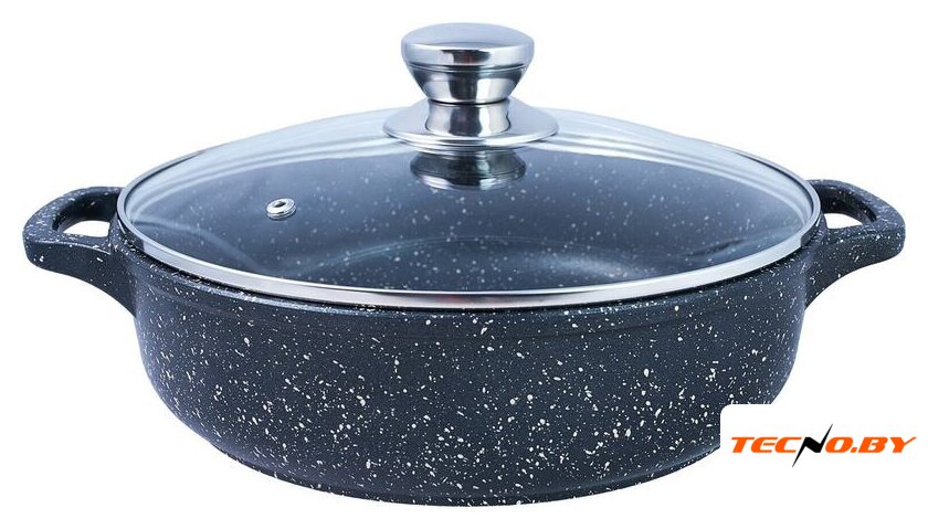 жаровня, алюминий, покрытие фторопласт, 24 см, стеклянная крышка, алюминиевая ручка