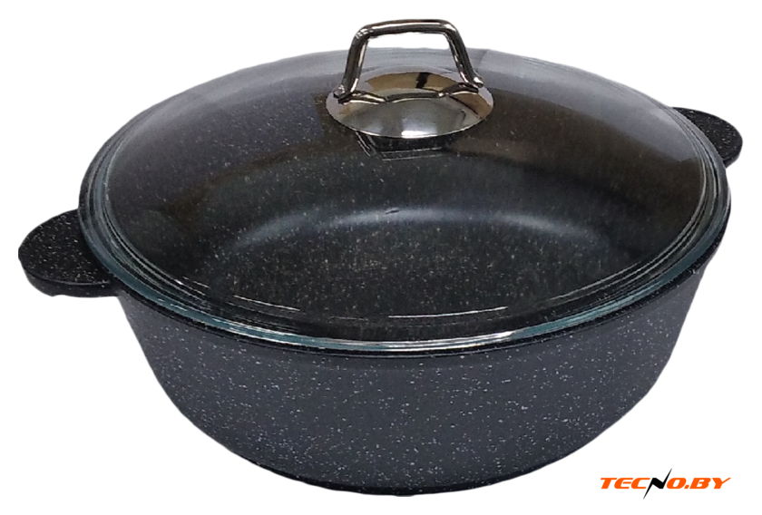 жаровня, алюминий, покрытие минеральное, 28 см, стеклянная крышка, алюминиевая ручка