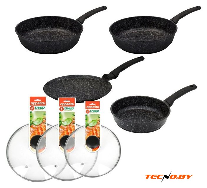 | Состав набора | блинная сковорода, сковорода (3 шт.), крышка (3 шт.) |
