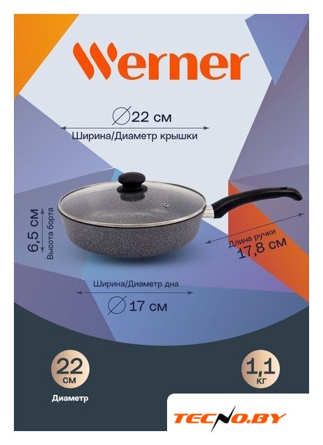 стандартная, алюминий, 22 см, стеклянная крышка, бакелитовая ручка