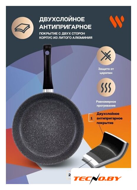 стандартная, алюминий, покрытие минеральное, 26 см, стеклянная крышка, бакелитовая ручка