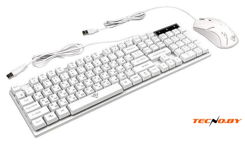 клавиатура + мышь для ПК, мышь проводная USB (сенсор оптический), клавиатура USB, цвет белый