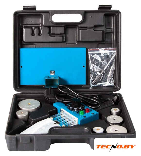 аппарат, 1000 Вт, мечевидный, 300 °C, термостат, нагрев 5 минут, с тефлоновым покрытием, насадки 20 мм/25 мм/32 мм/40 мм/50 мм/63 мм, кейс
