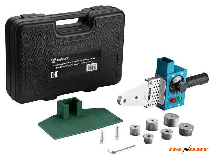 | Комплектация | Аппарат для сварки - 1 штПодставка - 1 штНасадки (гильза + дорн) - 20, 25, 32 мм - 3 штВинты - 2 штШестигранный ключ - 1 штКейс - 1 шт |