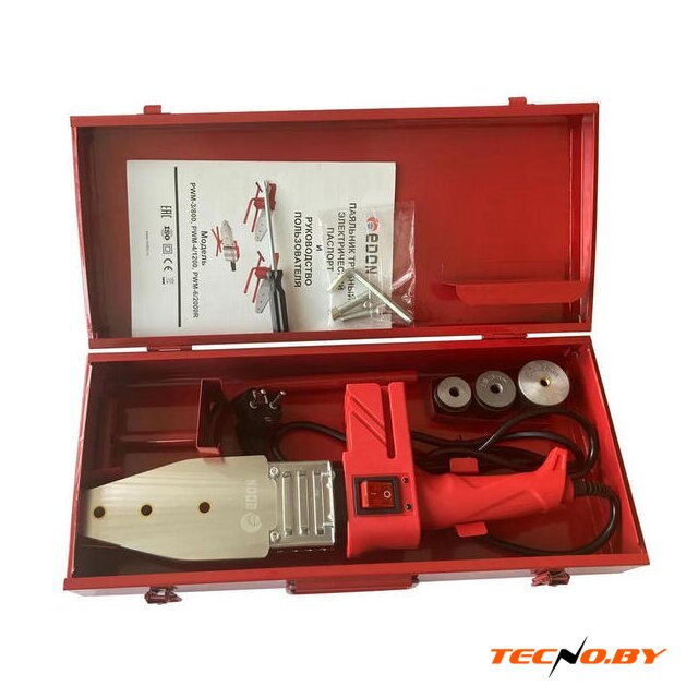 аппарат, 1000 Вт, мечевидный, 300 °C, термостат, нагрев 5 минут, с тефлоновым покрытием, насадки 20 мм/25 мм/32 мм/40 мм/50 мм/63 мм, кейс