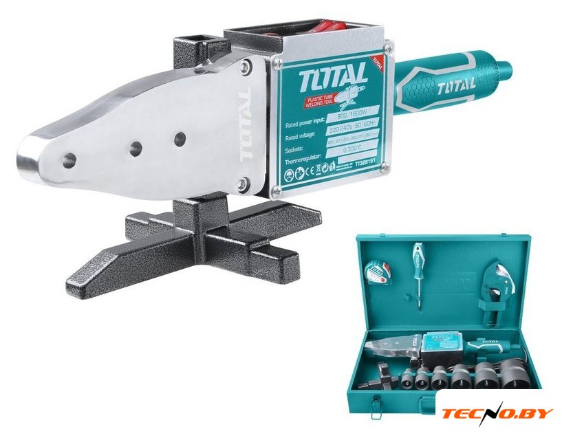 аппарат, 1500 Вт, мечевидный, 300 °C, термостат, нагрев 5 минут, с тефлоновым покрытием, насадки 20 мм/25 мм/32 мм/40 мм/50 мм/63 мм, труборез, кейс