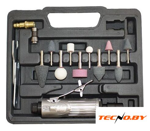 | Комплект поставки | - пневмошлифмашина,- 2 ключа,- 5 камней 3 мм,- 5 камней 6 мм,- 1 цанга 3 мм,- 1 штуцер 1/4",- 1 цанга 6 мм,- кейс. |