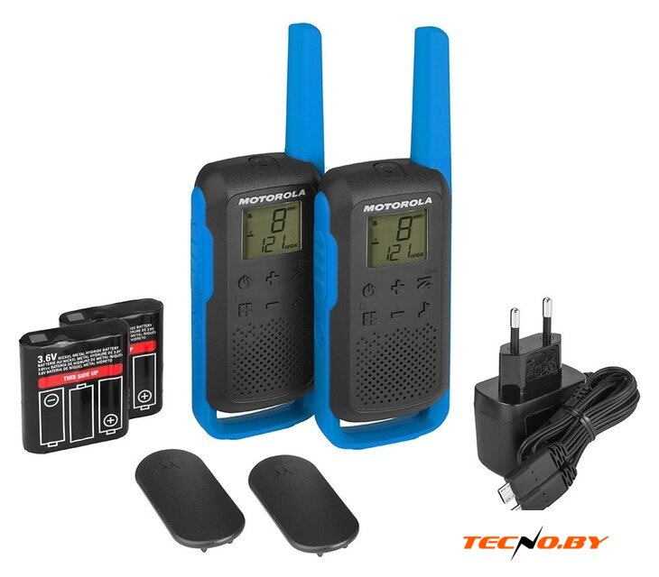 PMR (446.01-446.19 МГц), 16 каналов, передатчик 0.5 Вт, дальность до 10 км, аккумулятор NiMH, групповой режим