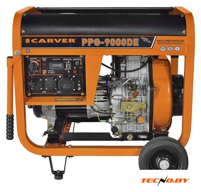 Carver PPG-9000DE оснащен синхронным генератором, который гарантирует высокую стабильность напряжения. Розетки на 220 Вт (16 А и 32 А) удовлетворят большинство потребностей в электроснабжении. Также генератор оборудован вольтметром для контроля напряжения и защитой от перегрузки, что обеспечивает его надежную работу и безопасность эксплуатации.