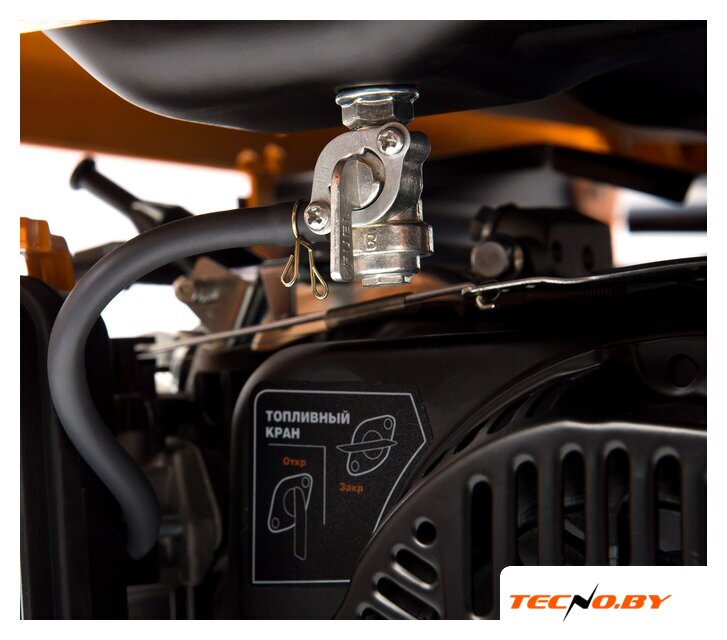 Генератор выполнен в стильном черно-оранжевом цвете, сочетая в себе элегантность и функциональность. Несмотря на свою мощь, его вес составляет всего 68 кг, что улучшает его устойчивость при интенсивной эксплуатации. Без функции передвижения, он стабильно остается на одном месте, что, в свою очередь, повышает его безопасность.