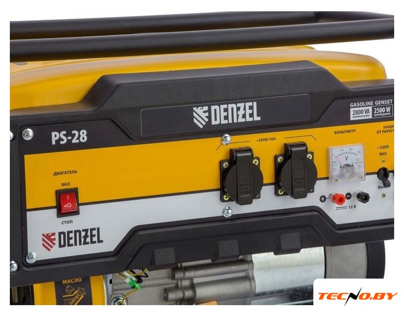 В основе Denzel PS 28 лежит синхронный генератор, который обеспечивает стабильное напряжение. Устройство имеет две розетки на 220 В (16 А), что позволяет подключать несколько приборов одновременно. Защита от перегрузки 📈 гарантирует безопасность работы, а вольтметр поможет контролировать состояние сети.