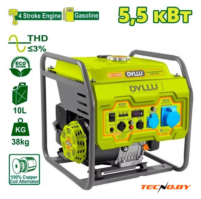 Бензиновый генератор Dyllu DTGEAB08 — это надежное устройство, которое идеально подходит для решения электроснабжения в домашних условиях. Максимальная мощность 5.5 кВт и номинальная мощность 5 кВт обеспечивают достаточно энергии для подключения нескольких электроприборов одновременно. С однофазным выходом и наличием розеток на 220 В (16 А и 32 А) генератор справится даже с самыми требовательными задачами.