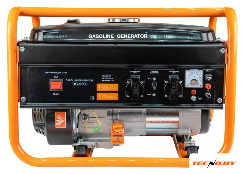 | Комплектация | • Бензиновый генератор BG-2500 – 1 шт.;, • ЕВРО вилки 230 В / 16 А – 2 шт.;, • Отвёртка (+/-) – 1 шт.;, • Провода с клеммами для зарядки 12 В АКБ – 1 шт.;, • Нижняя опора из резины («ножка») – 4 шт.;, • Свечной ключ – 1 шт.;, • Инструкция по эксплуатации + Гарантийный талон – 1 компл. |