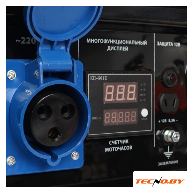 В основе генератора лежит четырехтактный двигатель объемом 389 см3, который отличается высокой надежностью. Благодаря емкости топливного бака в 25 литров и расходу топлива 3.125 л/ч, генератор способен работать непрерывно до 8 часов. Имеется индикатор уровня топлива и индикатор низкого уровня масла, что позволяет следить за эксплуатацией устройства и предотвращать возможные неисправности.
