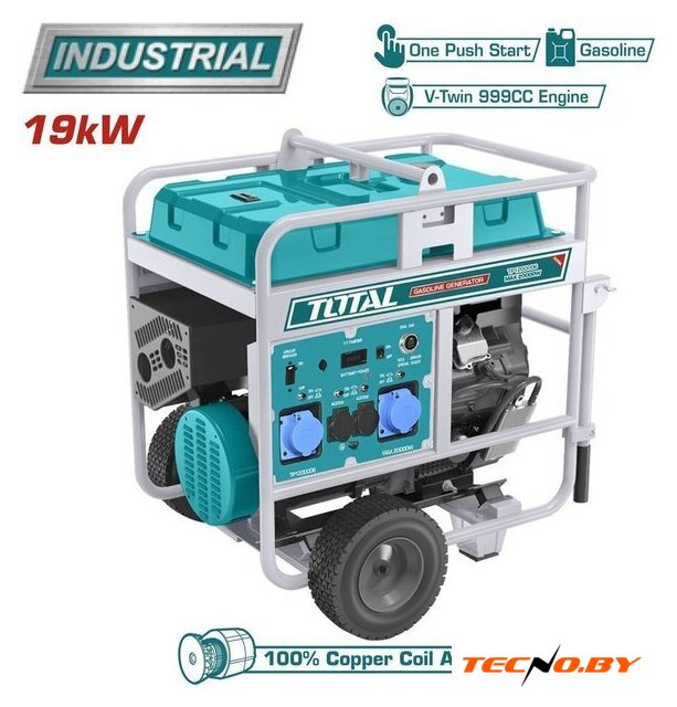 Сердцем генератора является мощный четырехтактный двигатель с объемом 999 см³. Это гарантирует долговечность и стабильную работу даже в самых тяжелых условиях. Емкость топливного бака составляет значительные 65 литров, что обеспечивает длительный период работы без необходимости частого дозаправки. Удобный ручной и электростартер запуска позволит легко завести генератор при любых погодных условиях.