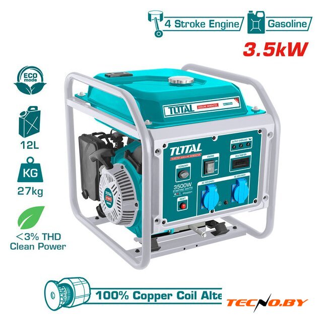 Бензиновый генератор Total TP340001 — это надежный источник питания для ваших бытовых нужд. Этот агрегат выполнен в открытом исполнении, делая его доступным и легким в обслуживании. Он предназначен для использования в неиндустриальных условиях, предлагая максимальную активную мощность в 3.5 кВт и номинальную мощность в 3.2 кВт. Это оптимальный выбор для обеспечения электроэнергией домашнего хозяйства или небольшого офиса в случае отключения электричества.