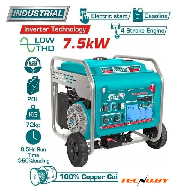 Бензиновый генератор Total TP375001 — это надежный источник энергии для самых разных нужд. С максимальной активной мощностью 7.5 кВт и номинальной мощностью 7.2 кВт, он способен обеспечить электричеством любой бытовой или малый коммерческий объект. Генератор поддерживает только одну фазу тока, но его достаточно легко передвигать благодаря переносной конструкции, что делает его идеальным решением для временного электроснабжения.