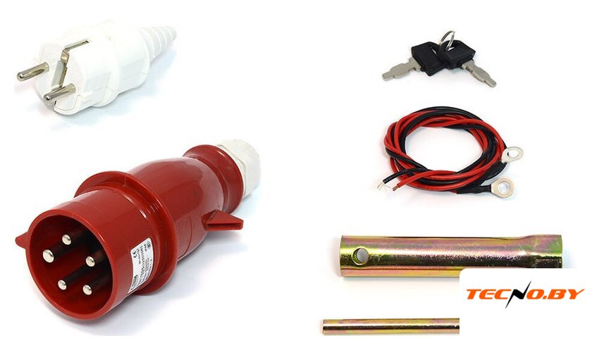 | Комплектация | - Электрическая вилка - 3 шт., - разъем для АВР, - комплект проводов, - свечной ключ, - колёса. |